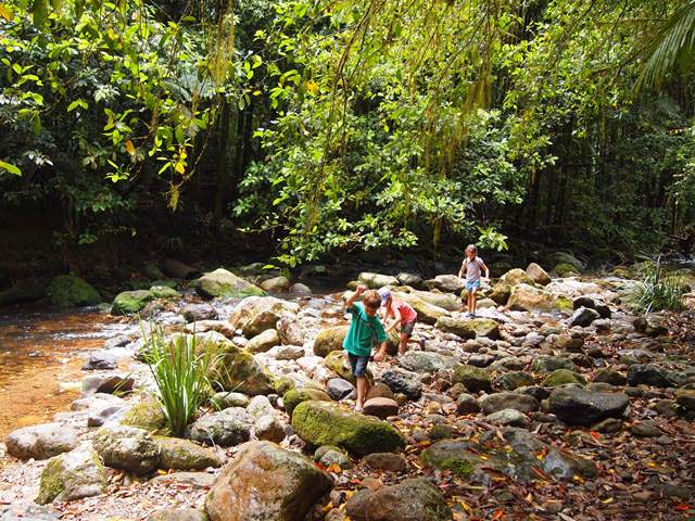 Apart from a drive into Murwillumbah to visit the bakery, we spent the day at the caravan park. There are many walks and outing in the area, but there is also plenty to do just here! There are little "exploring tracks" in the surrounding forest, vines to swing on, trees to climb, a cubby house, a tree swing that makes you feel as though you're flying, a swimming pool, birds to observe and feed, a creek where you can sometimes see platypus...